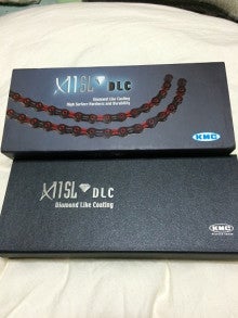 昨日頼んでたブツが届いてウキウキしてます。KMC X11SL DLCチェーン。取引のある代理店の在庫を見ても無かったので、残念ながら?個人輸入です。。。