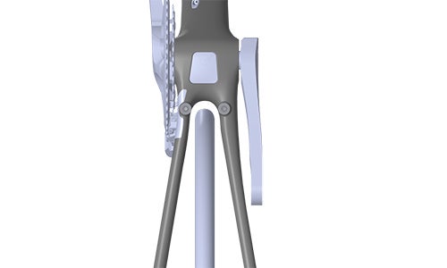 リヤブレーキがBB下(チェーンステー)のダイレクトマウントタイプになったことで、BB周りをしっかり補強しつつ、シートステーの縦方向の柔軟性がグッと向上!