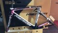 ワイヤー類は全てフレームに内蔵されてます。シフトワイヤーはヘッドチューブから内蔵です。ハンドルを下げるとちょっとつらいです、取回しが。