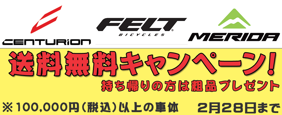 CENTURION(センチュリオン)、FELT(フェルト)、MERIDA(メリダ)、税込10万円以上の自転車/フレームセットをお買い上げの方にはもれなく!