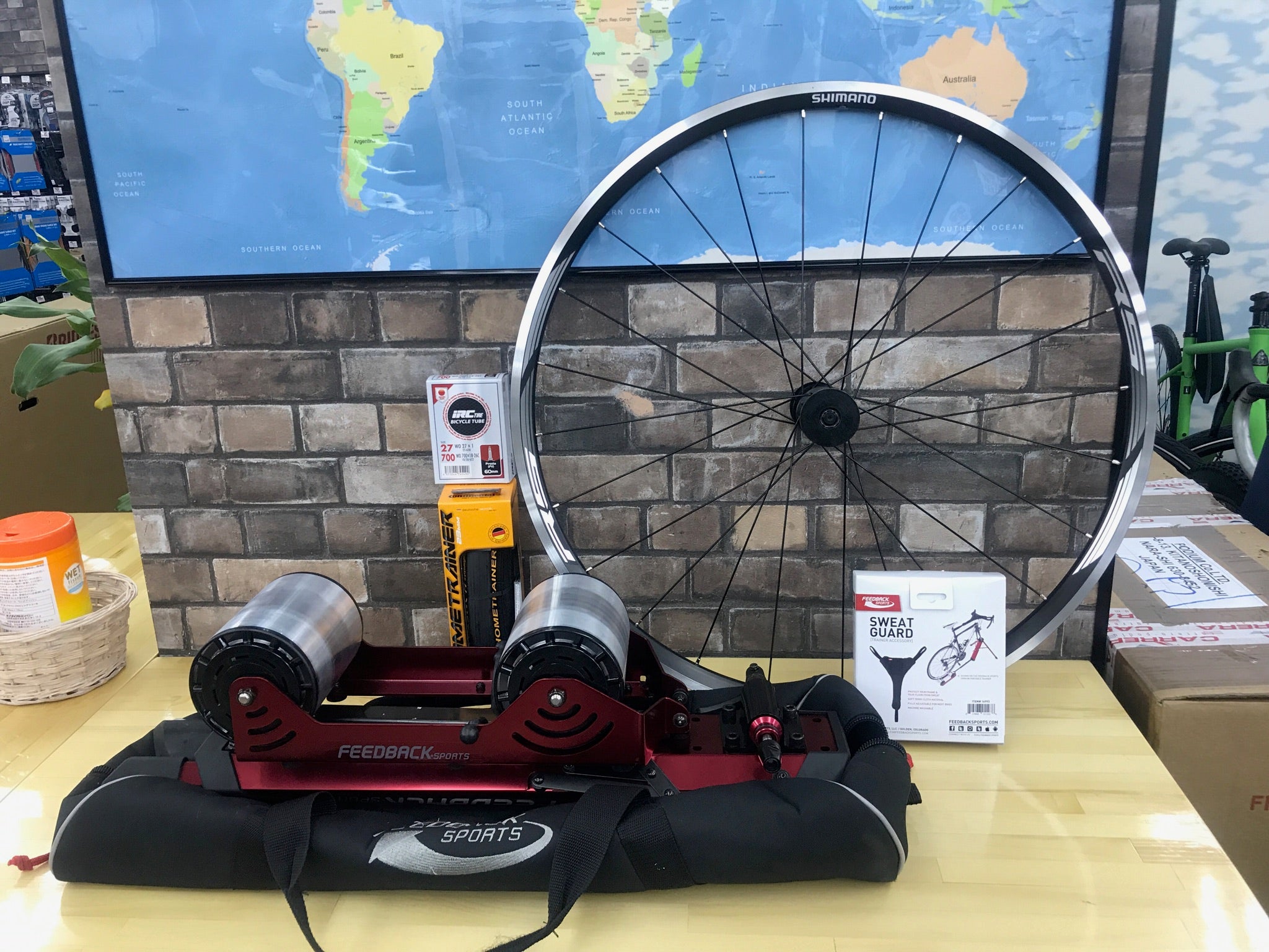 リヤ固定ローラーよりはましですが、それでもやはり後輪の耐久性は気になるところ・・・なので、今回はなんと後輪をお付けします! 後輪だけあってもしょうがないので、コンチネンタルのトレーナー用タイヤ、IRC製チューブもお付けしますよ。スプロケットは別にお買い求めください。。。