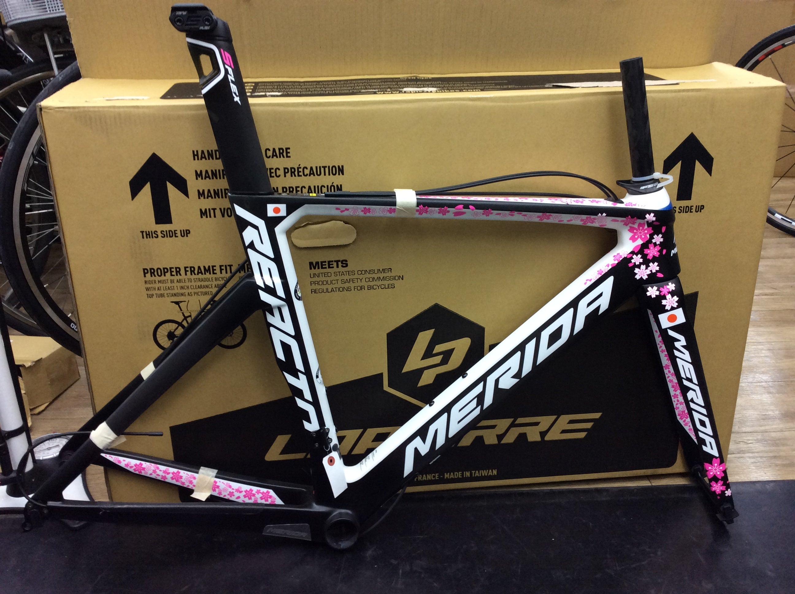 トップチューブからヘッド、ダウンチューブからフォークにかけて舞い散る桜はまさしく日本!