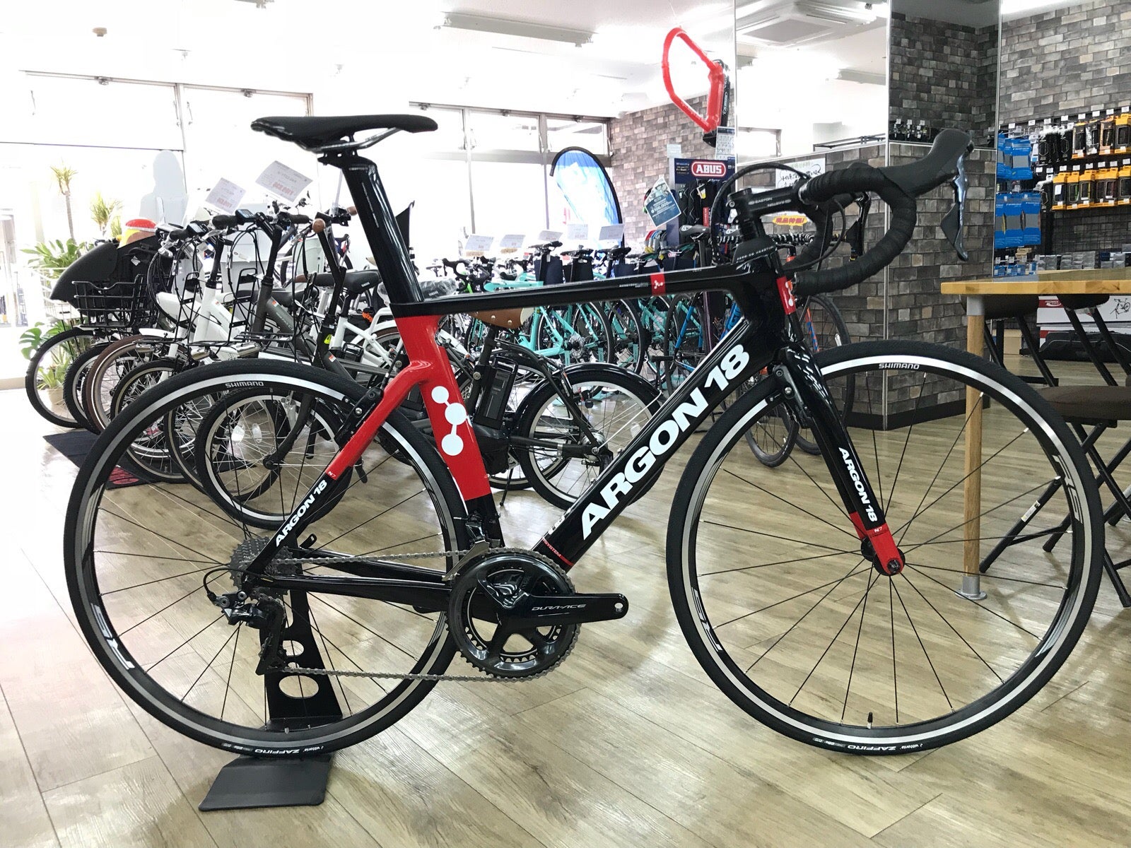 ARGON18のエアロロードですね。こちらはハンドルなどは普通のものを使うモデルです。