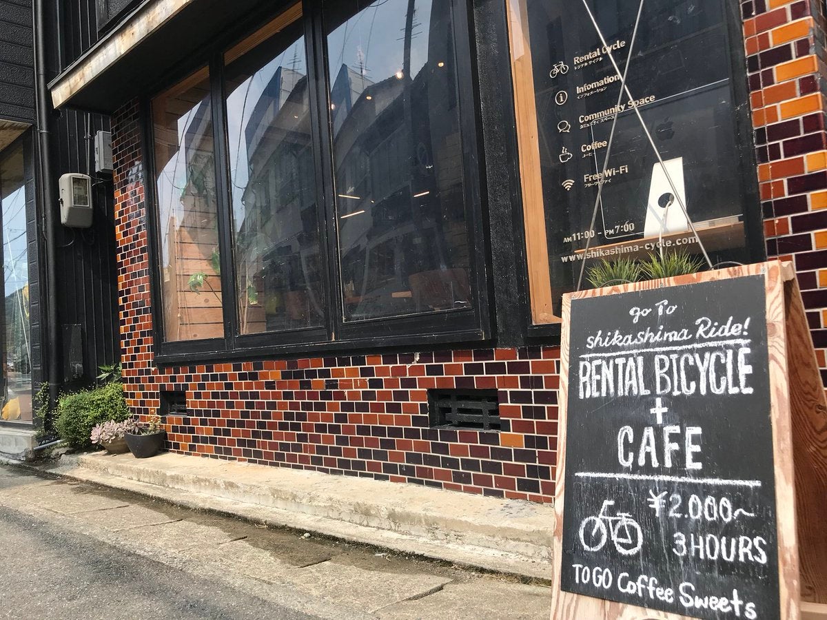 ここ、シカシマサイクルさんは、カフェスペースのほか、レンタルバイクも貸し出しされてますよ。ぜひぜひどうぞ。