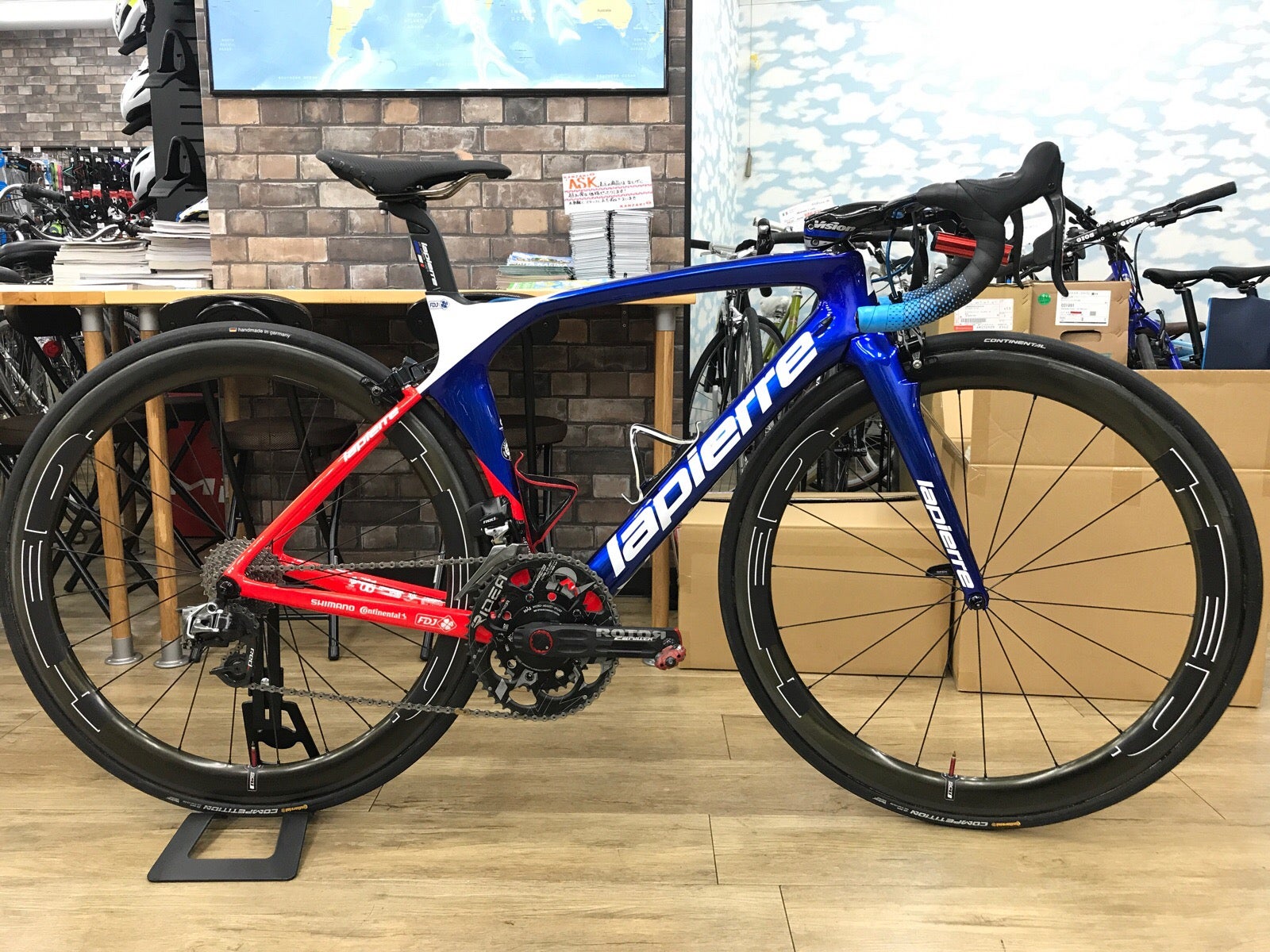 2018年モデルのFDJクロームカラーです。今年は流行り?の装備を色々試しに使ってみました。