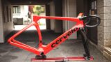 トップチューブのモデルロゴもグロスブラックです。リヤブレーキはフルアウターです。