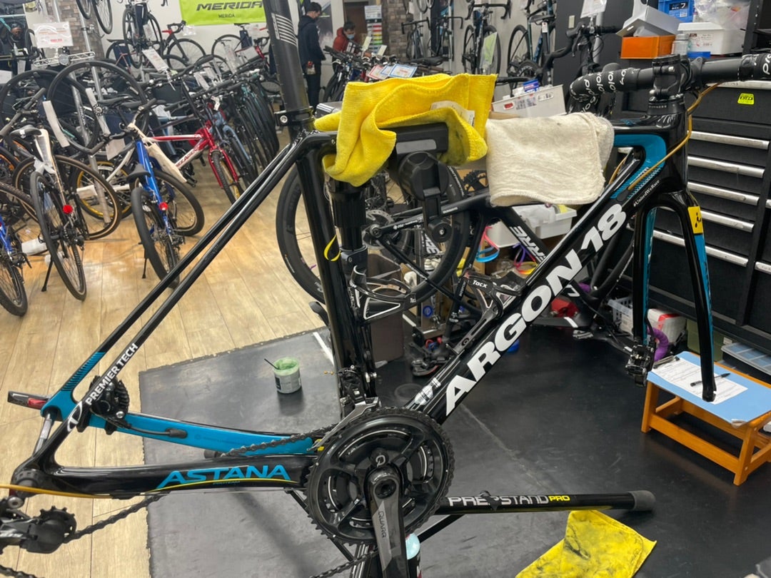 2月28日はこんな作業をしてました。 ブログ X Facebook はてブ Pocket LINE コピー 2022.03.032025.04.19 まいど!てんちょーです。 本日はレース後のメンテナンスと、遠征前の点検をしましたよ。 まずはレース後のメンテナンスから。 落車したとのことで、フレームの確認後とエンド修正を。 おおむね問題なしでした。 お次は海外遠征前のメンテナンス。 ホイールの振れが気になるーとのことで、前後とも振れ、センター確認しました。 ちなみにタイヤはチーム供給仕様でした。 持ち込みのメンテナンス、定期点検、気軽にお申し付けくださいー! ではまた!