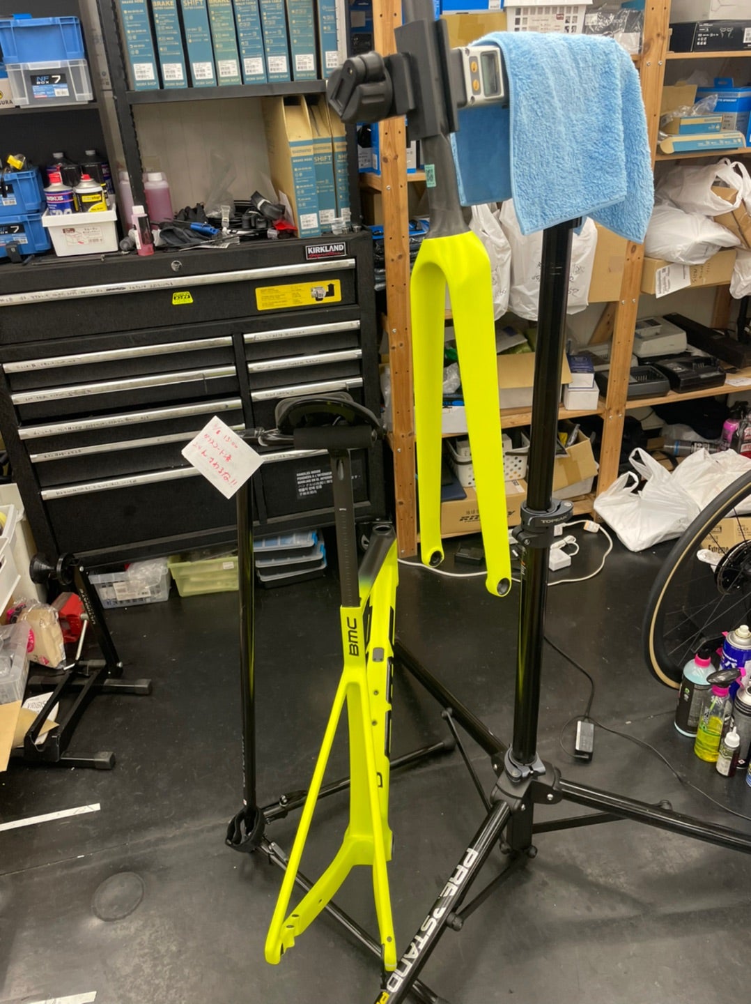 写真は施工後に硬化を待っているところです。大体24時間置いてから組み立て開始という感じです。