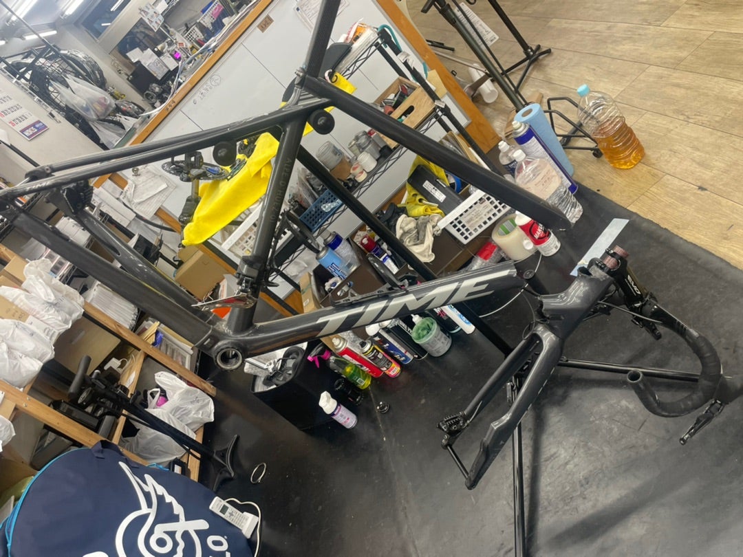 木祖村で落車してフレーム割れたので、特急で組み替えました。
