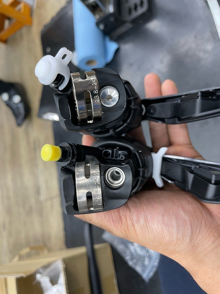 ブレーキホース接続部のプラグが黄色がアルテ、白が105のレバーです。