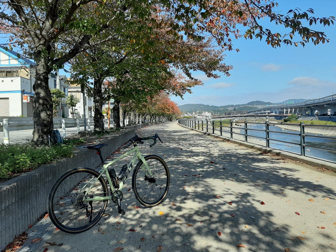 ちょっとした砂利道ならロードバイクでも全然走れるとは思うのですが、河原を走る時はグラベルだとめっちゃ安心感があります💪