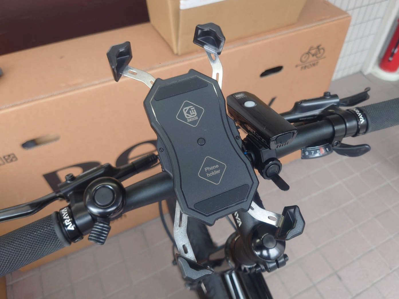 様々な径のハンドル部分に取り付け可能なスマホホルダーです。