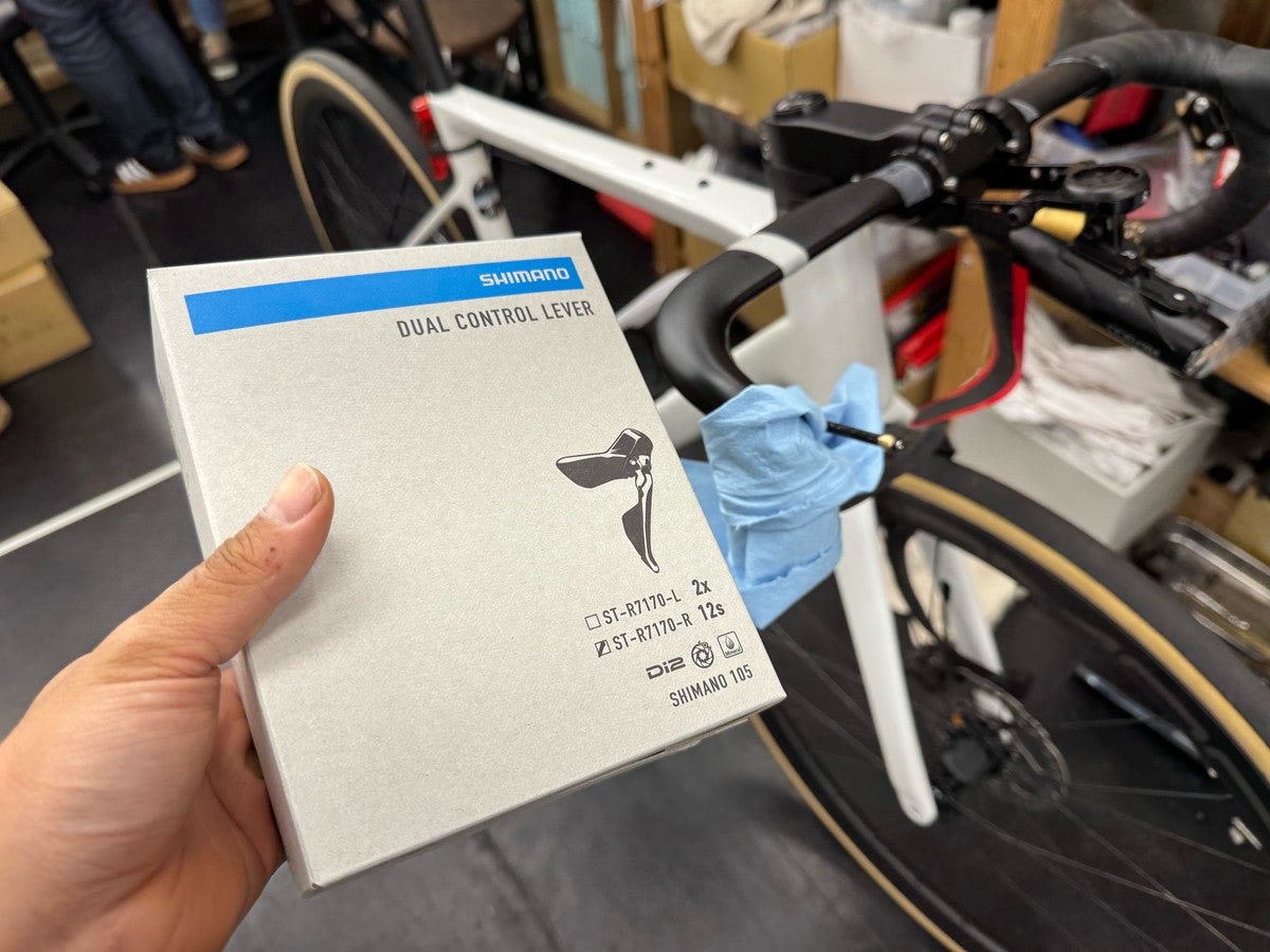 今回はSTIレバーからのオイル漏れでシマノに不良申請していた分が届いたので、レバー交換をしました。