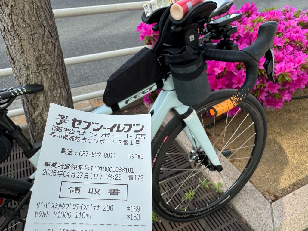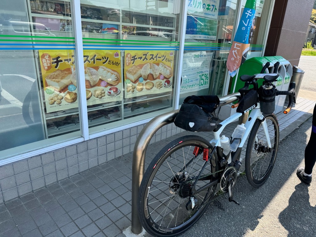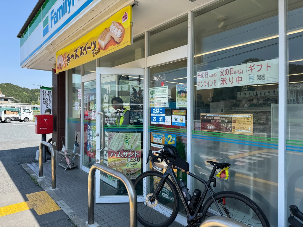 PC2 ファミリーマート柏原下小倉店。156.6km地点。この頃には気温が20度近くまで上がっていて暑かったですね。