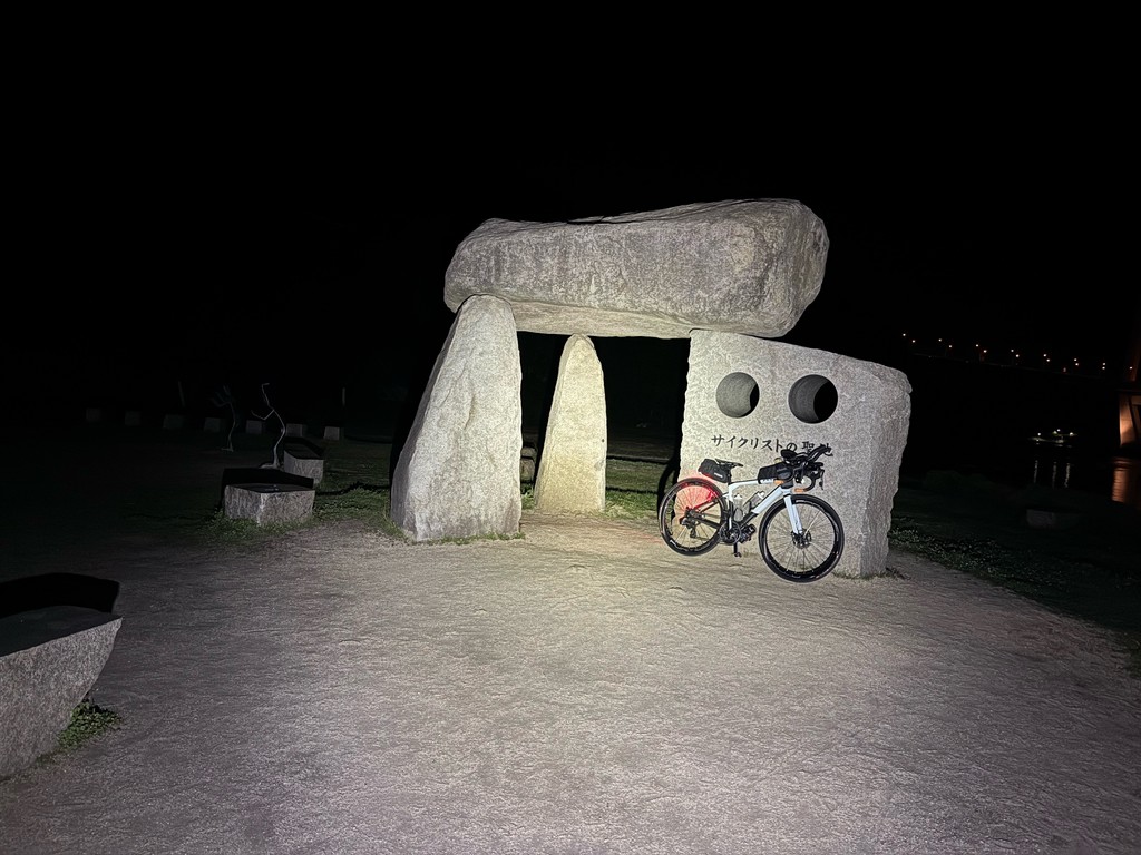 更にフォトコントロール、サイクリストの聖地記念碑。夜であまり来たことが無いので数分迷いました。