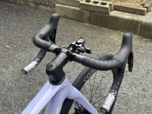 バーテープはロゴカラーとのバランスを考えてGuee SL Dual Metallic シルバーカラーになりました。クッションよし、グリップよし、で個人的にイチオシのバーテープです。
