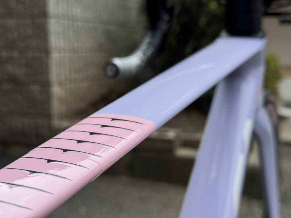 トップチューブにはRideWrapのペイントプロテクションフィルムを施工。トップチューブバッグを使われるので、バッグで塗装が持っていかれないように必須装備です。