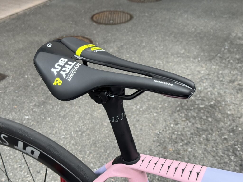 サドルはこの時は一旦テストサドルでフィッティングを見ましょう、ということでPrologo NAGO PAS R4をご提案。