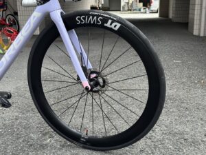 ホイールはDT SWISS ARC1100 50mm高のモデルです。タイヤは Continental Grandprix5000 25c です。
