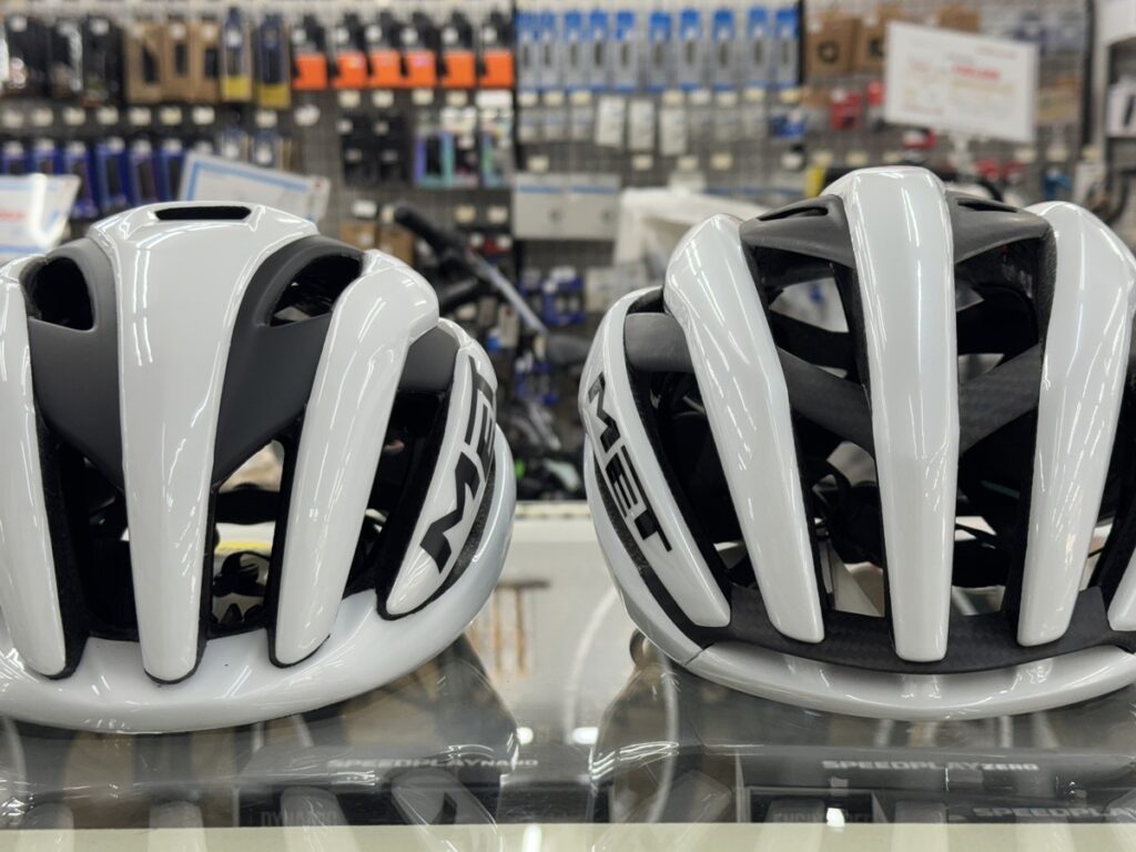モデル名に由来するヘルメットのカーボンフレームの使い方も大きく異なります。
