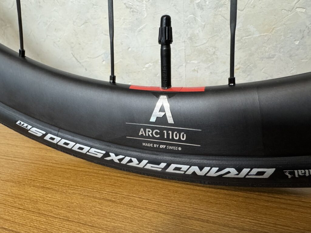 ARC1100の38mm高、ディスクブレーキモデルのカーボンスポークが採用されたモデルです。