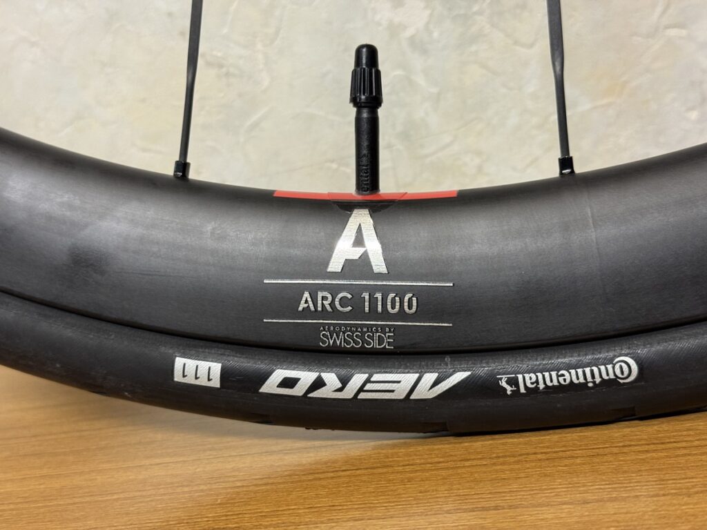 ARC1100の38mm高、ディスクブレーキモデルのカーボンスポークが採用されたモデルです。