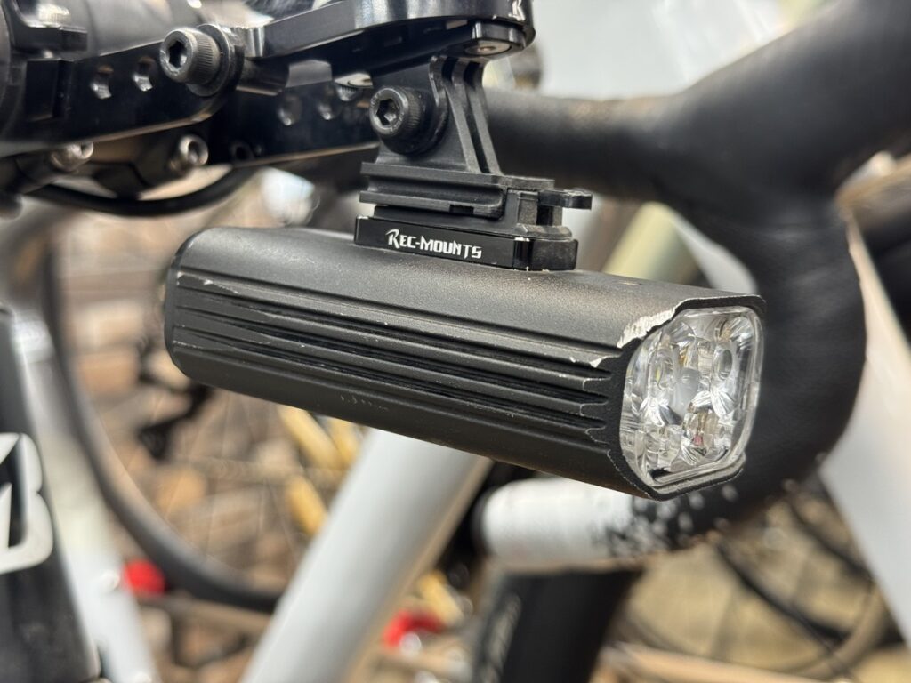 私のブルベ実運用時は、サイクルコンピューターにも拡張バッテリーを付け、アクションカメラに予備ライト。ライトで100g軽くしたとて。