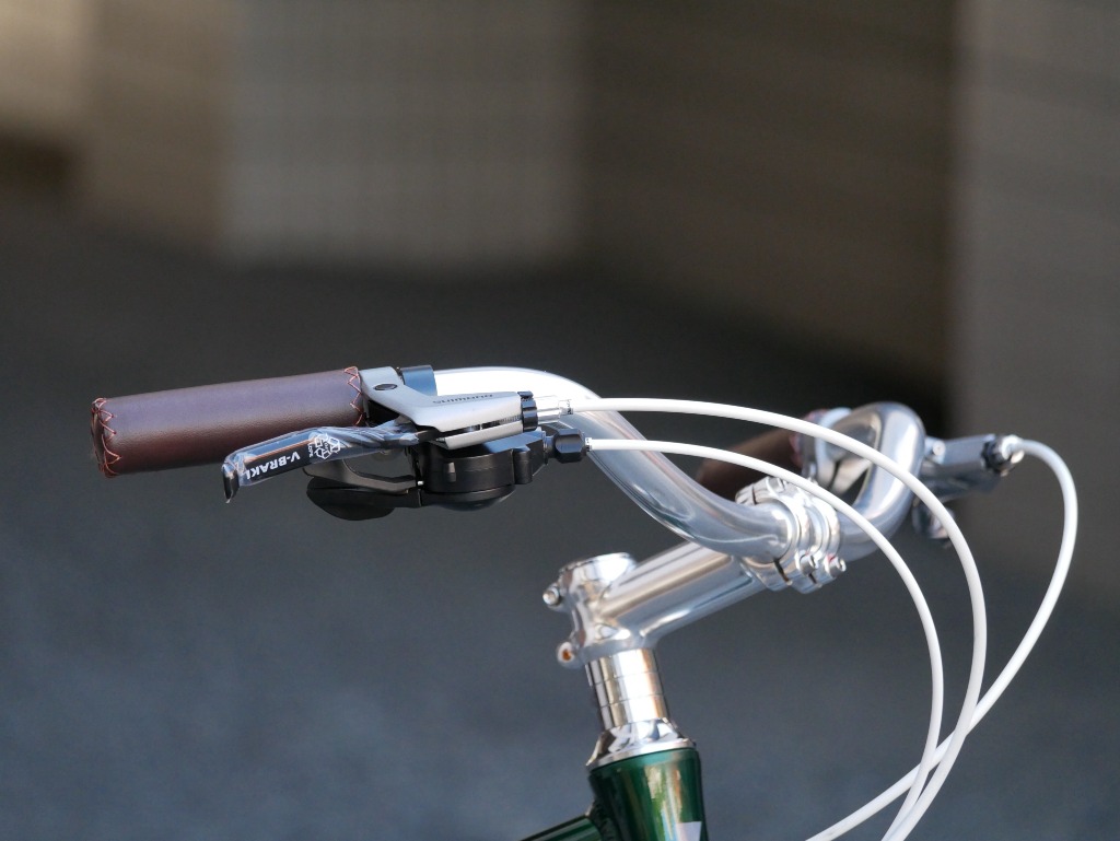 特徴的な大きく手前に曲がったハンドルは、頑張らないサイクリングにぴったり。