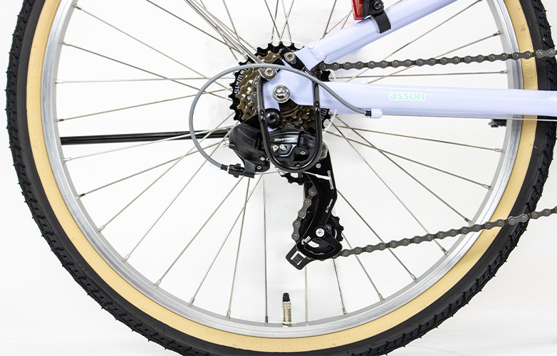 お子様の握力でもしっかり止まることができるVブレーキを採用し、外装 6 段変速だから坂道もスイスイ進むことができます。