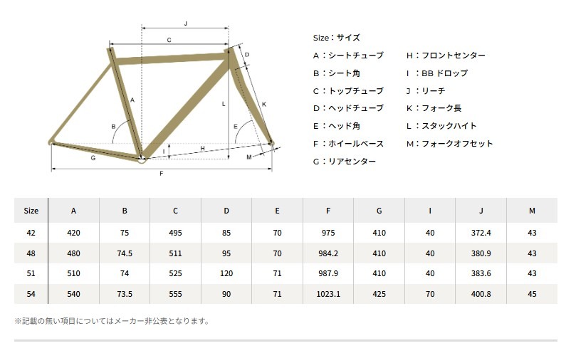 - クランク:Alloy 44T 420:165mm / 480-540:170mm