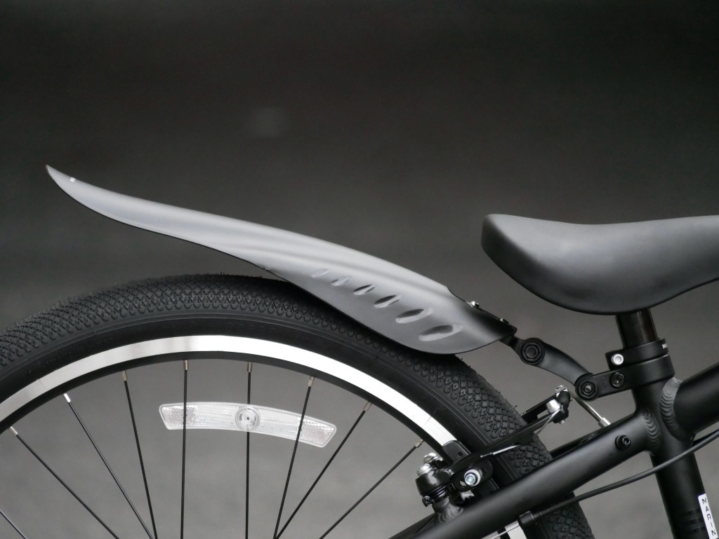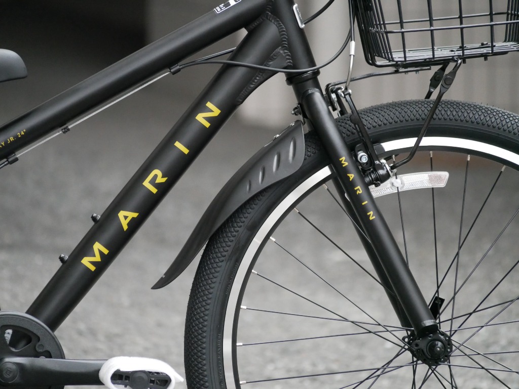 泥ハネからしっかりお洋服を守ってくれます。バイクに取付けやすく、フェンダーにはMARIN熊ロゴ入りです。