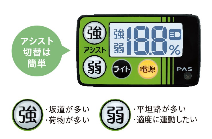 弱モード:98 km/強モード:63 km - アシストレベル:★★★★★☆