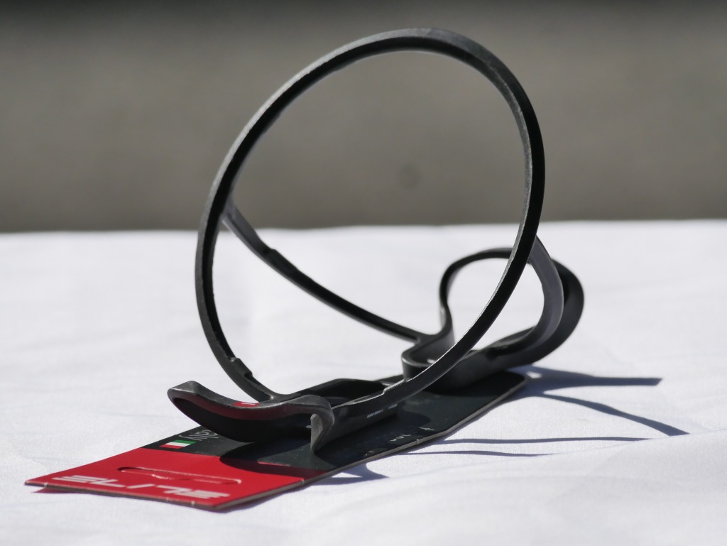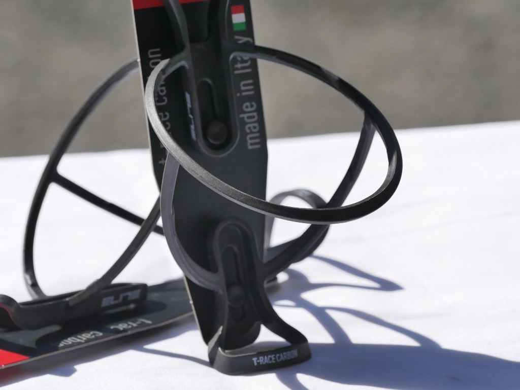 超軽量で高い耐久性を備えるカーボン強化素材のボトルケージ。