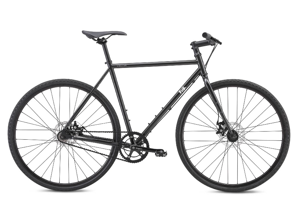 ワイドなライザーハンドルを装備したシングルスピードグラベルバイク。