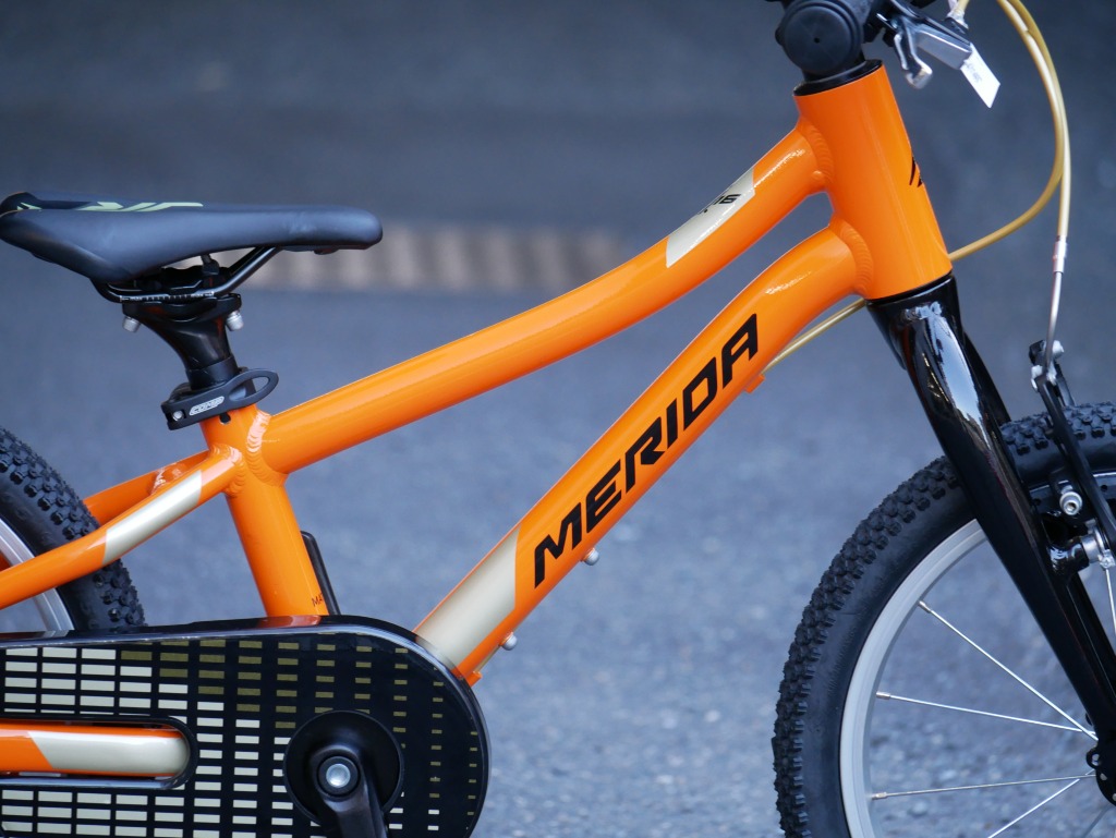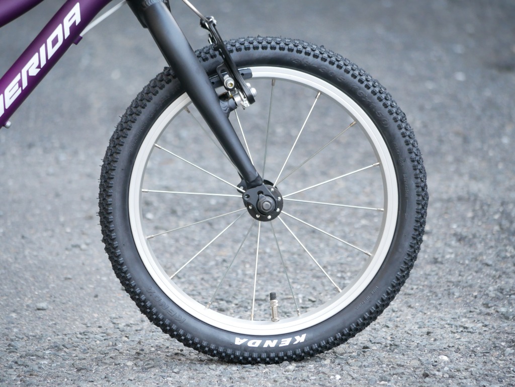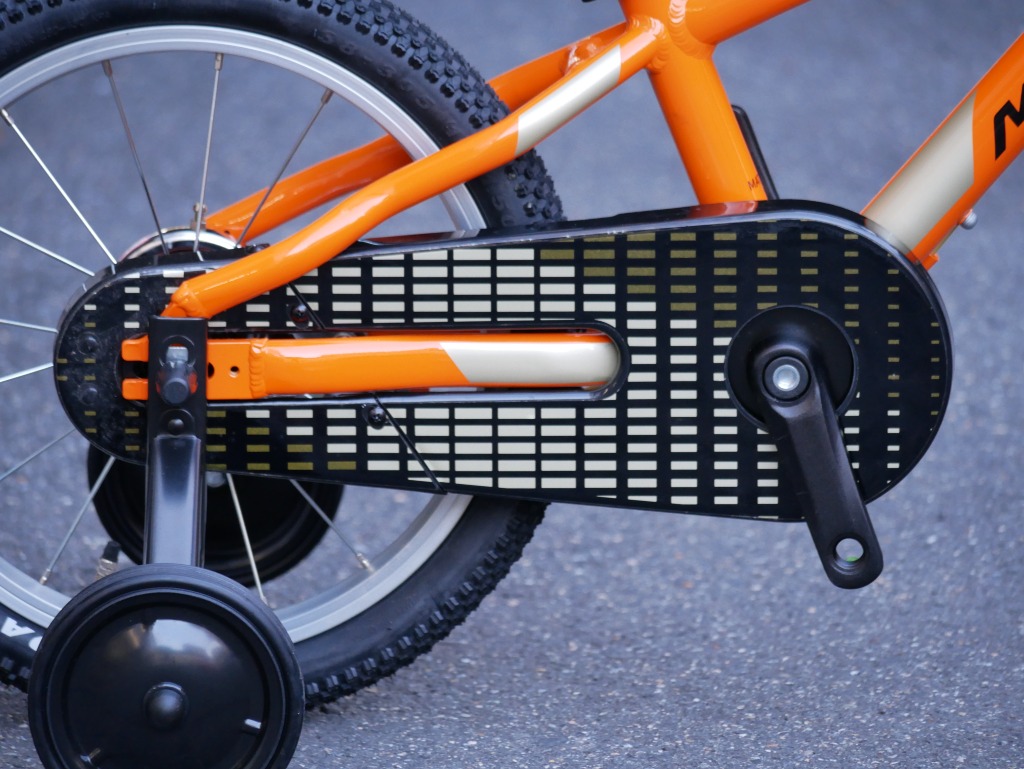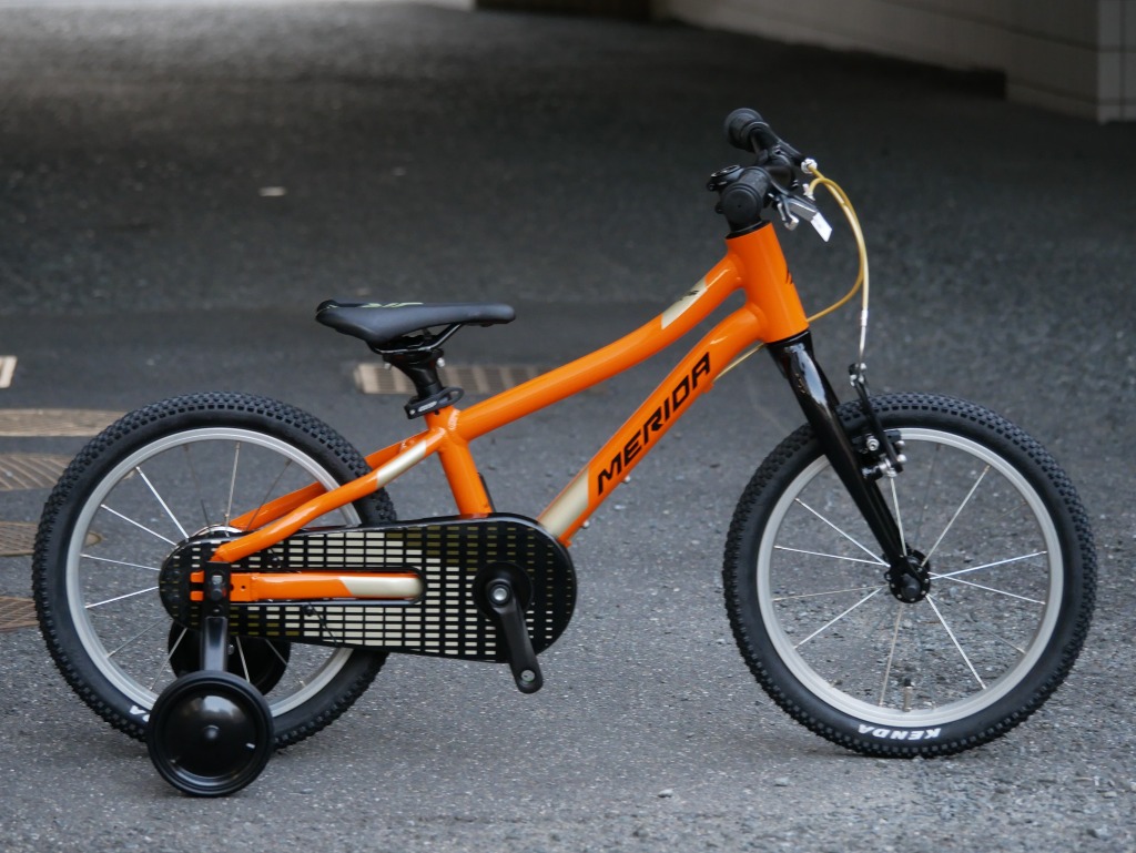 Vブレーキ&バンドブレーキの安全装備を持つ補助輪付き16 インチモデル。
