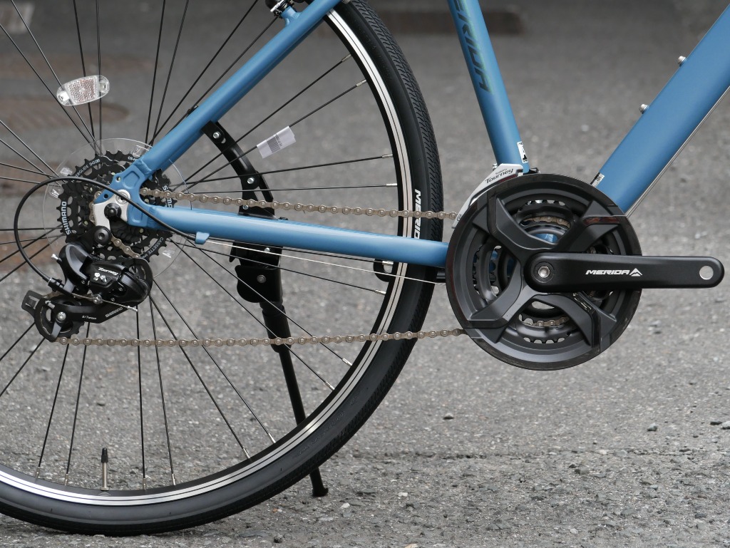 ドライブトレインは信頼性の高いSHIMANO Tourneyを採用し、自社工場を持つMERIDAならではのお求めやすい価格と仕様を両立したクロスバイク。